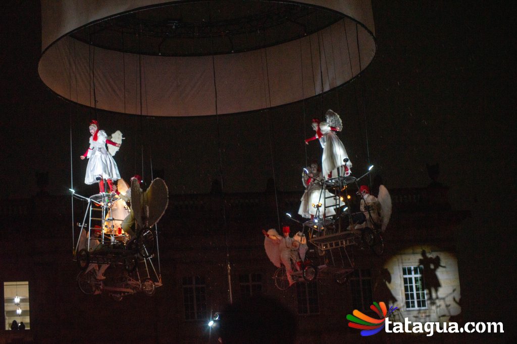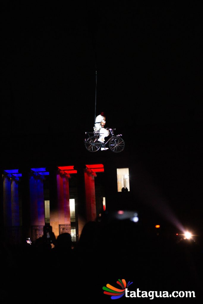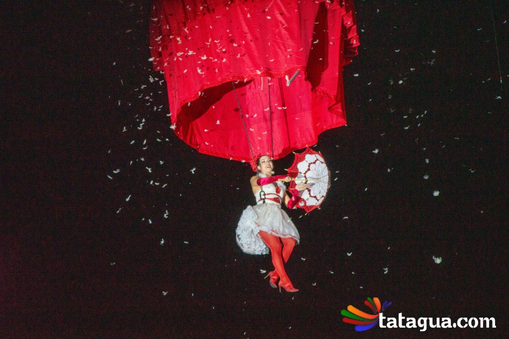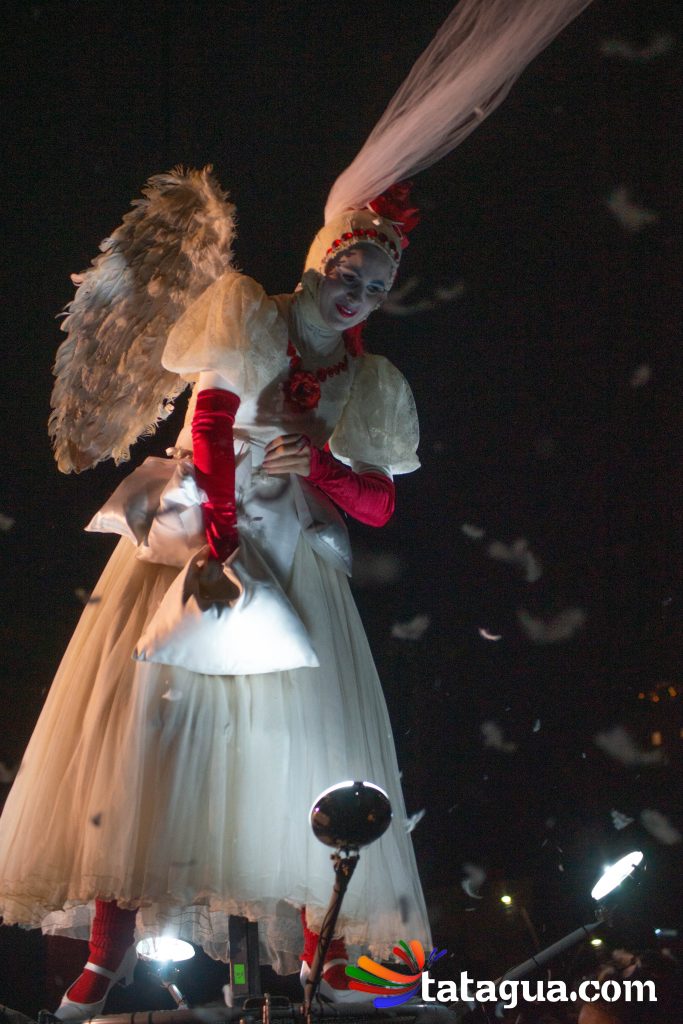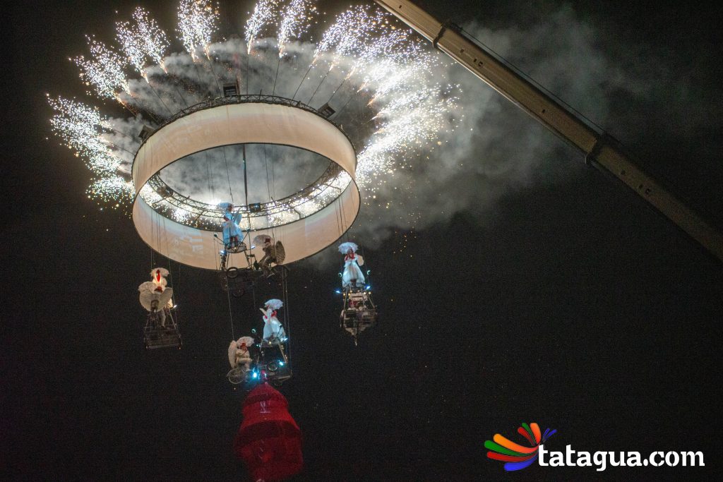 Al cielo bogotano de la Plaza de Bolívar llegó ángeles que con sus voces, movimientos y pedaleos ofrecerán el ‘show’ de inauguración gratuito para toda la familia. Fuegos artificiales, globos, plumas y bicicletas se alzarán al firmamento al compás musical durante un espectáculo aéreo que fusiona la ópera con el circo. En el corazón de la capital se desarrollará una historia de amor que partirá desde la tierra, pero de a poco se elevará hacia las estrellas. Con apoyo de imágenes cinematográficas, algunos ángeles balancearán sus cuerpos y otros volarán. En esta narración nocturna, la unión y la esperanza surgirán con invasión de luces en medio de la oscuridad. Este mundo de sueños poéticos ha recorrido más de treinta países. Ha viajado desde Europa y Asia hasta Oceanía y Latinoamérica. Este es el regalo inaugural de FIAV Bogotá para todas las edades.